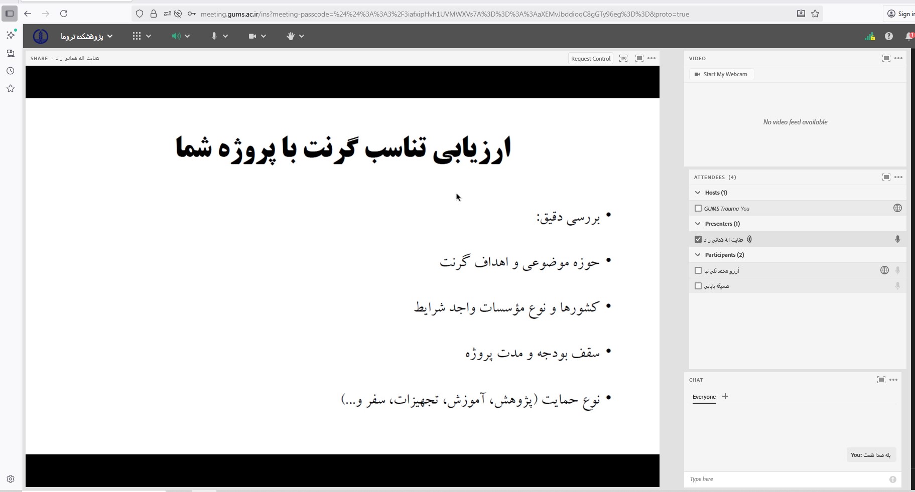 به گزارش روابط عمومی پژوهشکده تروما؛  دومین جلسه از دوره پیشرفته مدرسه پاییزه تحت عنوان دیپلم پژوهشی در تاریخ 11آبان 1404برگزار گردید.