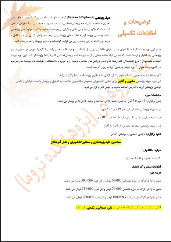 جهت دریافت اطلاعات تکمیلی اینجا کلیک کنید دیپلم پژوهشی